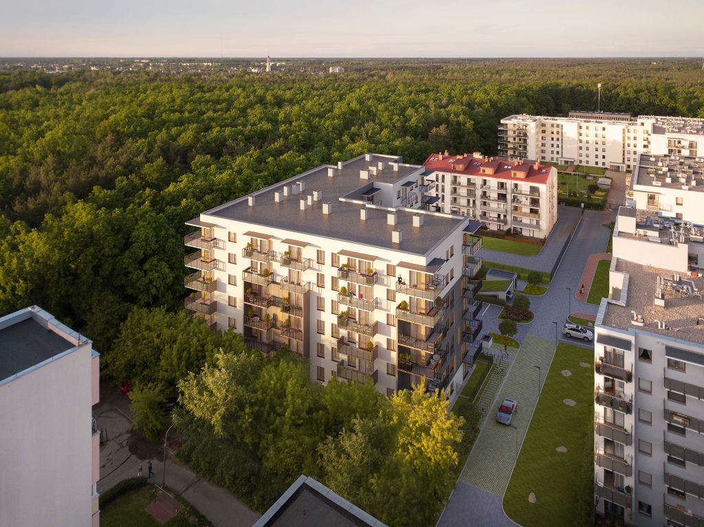 Apartamenty Przy Lesie to wyjątkowe miejsce w otulinie Lasu Rembertowskiego oraz Rezerwatu im. Jana III Sobieskiego w Marysinie Wawerskim. Na 7 kondygnacjach budynku zaprojektowano łącznie 84 atrakcyjne i funkcjonalne mieszkania o powierzchni od 42 do 99 m2. Wszystkie lokale posiadają przestronne balkony lub tarasy, umożliwiające relaks w otoczeniu zielonego sąsiedztwa. Dodatkowo, mieszkańcy parteru będą mieli do swojej dyspozycji przydomowe ogródki o indywidualnej powierzchni nawet do 160 m2. Niewątpliwym atutem apartamentów, zaprojektowanych od strony Lasu Rembertowskiego, będzie wspaniały widok na zielone korony leśnych drzew, rosnących tuż przy granicy nieruchomości. Zakończenie budowy planowane jest na 31.01.2022 r.