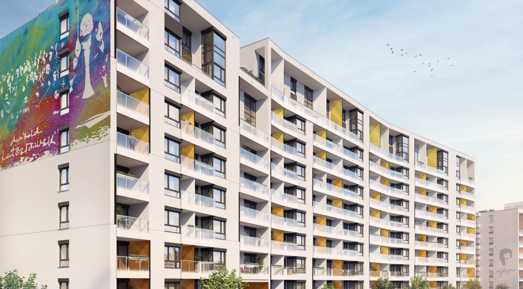 W nowych etapach osiedla zaplanowaliśmy budynki od 7 do 10 kondygnacji. Na parterze budynków, od ul. Rydygiera i ul. Przasnyskiej, znajdą się liczne punkty usługowe. Komfort posiadania w zasięgu ręki sklepów, piekarni, kawiarenek jest nie do przecenienia! Tętniąca życiem ul. Rydygiera połączona z placem Niemena stworzy miejski pasaż handlowy. Powstanie nowa przestrzeń miejska – ciekawe miejsca, nowe możliwości i udogodnienia. W kolejnych etapach powstanie ogólnodostępny plac miejski im. Andrzeja Wajdy, który będzie centralną częścią całego osiedla.